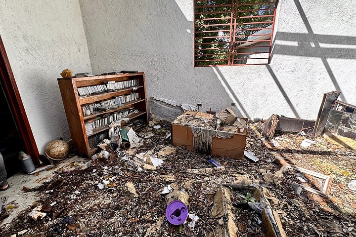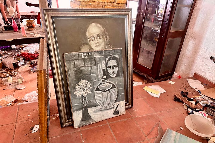 During our visit to the former Oloffson Hotel (photos below), we were accompanied by members of the neighborhood’s self-defense group. Before and after the fire, armed criminal groups occupied the famous hotel’s premises and grounds. The hotel had previously served as the headquarters of the RAM group and where Arcade Fire had previously performed.