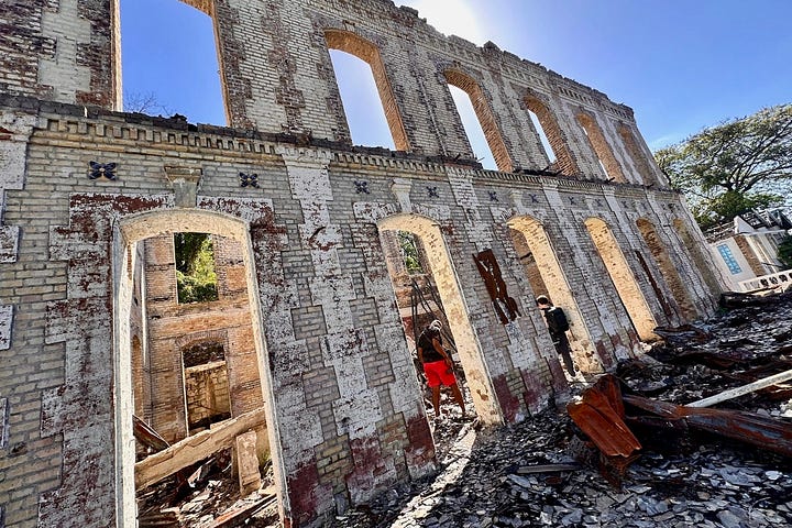 In recent days, authorities have carried out large-scale operations to liberate certain areas of downtown Port-au-Prince that were recently under the control of armed criminal groups. We were finally able to visit the Oloffson Hotel ruins (first two photos) to assess the damage caused by the last year’s fire that destroyed this historic building.